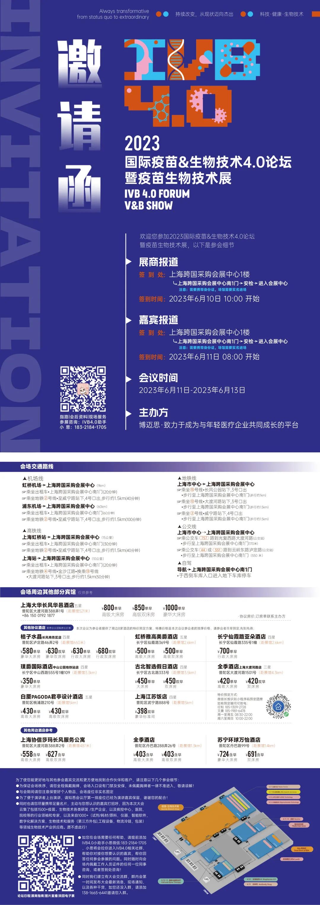 @疫苗和生物技术行业的所有同行们!2023IVB4.0国际疫苗&生物技术4.0论坛将于 6月11-13日 在上海跨国采购会展中心盛大召开!还有最后200张门票免费领取,6月11-13日开展期间报名的,均需付费参与!