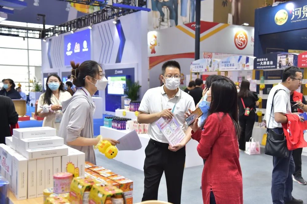 在展会上,跨境电商产业园有限公司展销区人气火爆,展位围满前来咨询、购物的游客,欧美美妆产品、韩国洗护用品、酒水格外受欢迎,还有不少参展企业前来促合作、寻商机。