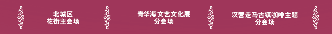 分会场:为青华湖区及汉营走马区,青华湖分会场为文艺文化展,汉营走马分会场为咖啡产业相关个人及单位主题展,两个分会场皆围绕主会场展开相关活动。