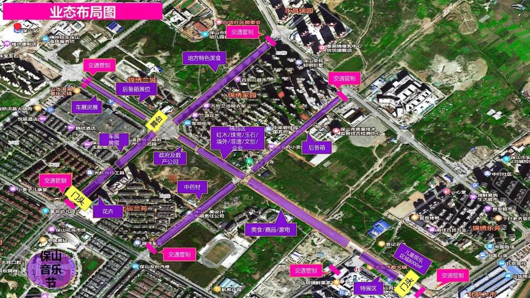 2、主会场:以保山中心城市北城区拱北路、正阳北路、兰城路为花街经营性主会场。