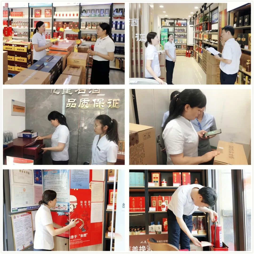 为深入贯彻落实集团及酒业公司安全生产月活动要求,排查、检查、督导各连锁门店安全隐患整改落实情况,6月10日,酒业公司组织开展负责人“五带头”专项排查整治活动,公司经理单瑞霞、副经理王晓芹、夏来起带队到市区及县城一线门店进行安全生产检查。