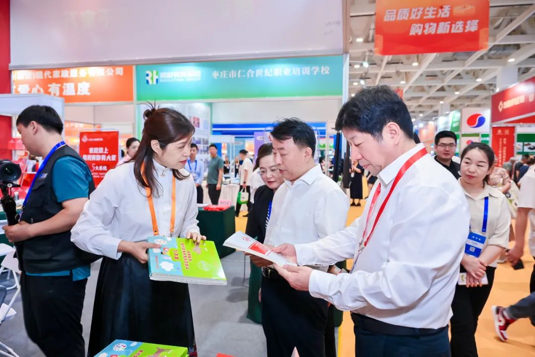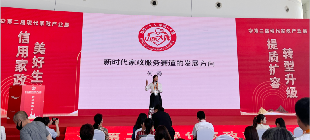 本次展会中,山东大嫂展区集中展示了:商学院、中加学院、家政服务、萌诺月子会所、雄新医康、早教托育、养老护理、品质生活、合作咨询、教材(闪卡)十大内容,既结合本次“信用家政,美好生活”主题,又体现出山东大嫂始终不忘“用爱与真诚服务千家万户”的使命与责任。刚刚开展,山东大嫂的展厅内已门庭若市,前来咨询的人挤满了会场。在职业培训展区,一位年轻的女士带着妈妈前来咨询学习,在工作人员的讲解下母女二人都要进行报名;在月子会所展区,还在冒着热气的月子餐吸引了不少夫妻的目光;在商学院展区,前来咨询的企业老板围坐一团,对6月13日即将开课的家政师资班兴趣满满;在雄新医康展区,参观者对“精准康复治疗”充满了期待,纷纷表示等到空闲时间一定亲自去体验;最受欢迎的还是山东大嫂自编教材,参观者们爱不释手,表示要把山东大嫂的教材带回家!开幕仪式结束后,商务厅副厅长王洪平等领导一行到山东大嫂展位进行考察,山东大嫂集团总裁何霞女士为领导们详细讲解了山东大嫂的发展历程与各个板块经营现状,并带领领导们参观了功能区展示内容。领导们对于“有情怀,做家政”给予充分肯定并针对山东大嫂未来建设和高质量发展提出更高期望和要求。下午,何总以“新时代家政服务赛道的发展方向”为主题发表了讲话。何总表示,家政服务标准化是家政服务业提升标准的重要抓手,“标准化”不仅仅是家政从业人员技能与服务建设的标准化,更是家政公司内部管理与工作流程规范的标准化。十八年的发展中,山东大嫂始终坚持“两手一心”理论,即以“全心全意为人民服务”为不变初心,以“一手抓市场牛鼻子,一手抓品质服务”为牛鼻子,结合市场需求,做深专业、做强服务,全方位提升家庭生活品质,推动家政行业提质扩容、高质量发展。本届展会,家政行业发展后劲十足,山东大嫂将以此次活动为契机,与山东省各品牌家政企业共同打造品牌形象,通过展览展示、互动体验、惠民促销等形式,实现互惠互利、共赢发展,推动家政行业提质扩容、高质量发展!