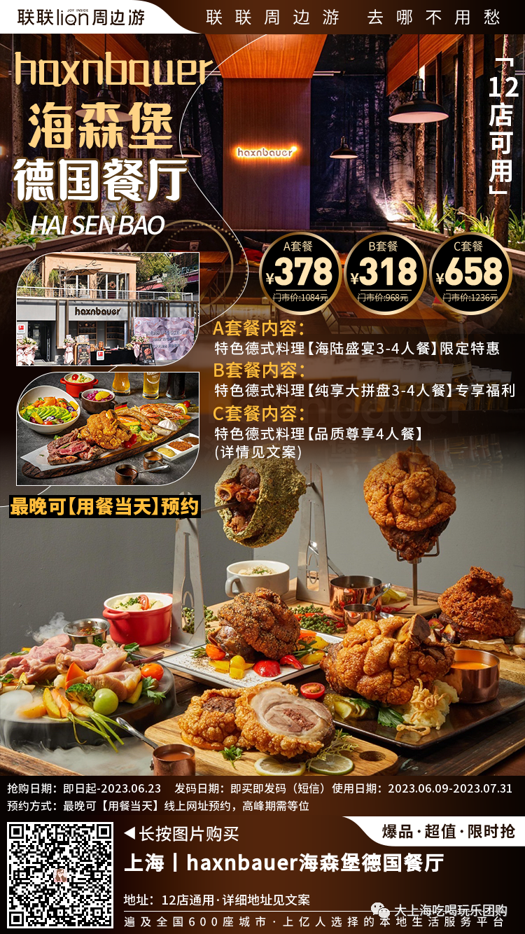 【啤酒季 | 夏日狂欢「海森堡」特色德料,多店可用】有惊喜驻唱哦~仅378元可享海陆盛宴3-4人餐等等…美食+美酒、超棒欢聚~