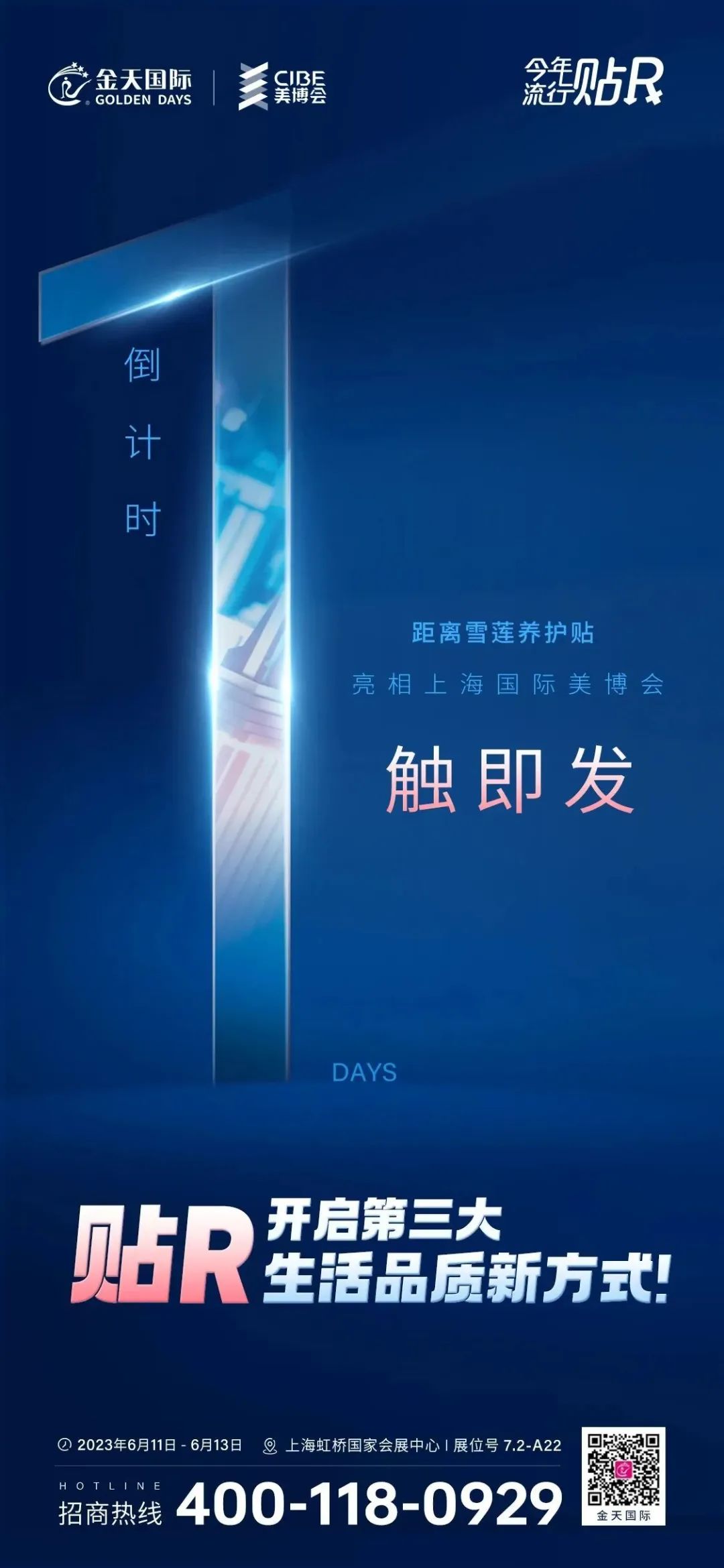 还有1天,历经48小时不舍昼夜布展搭建、承载贴R理念与金天国际30年荣耀发展历程的雪莲养护贴品牌展厅就将与大家见面,感受贴R魅力、畅享生活品质新方式,我们明天见!