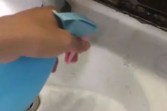 我们也可以把它喷在洗脸盆有污垢的地方,里面含有食盐可以很好的擦拭洗脸盆边沿的污垢,擦拭之后就会变得非常的光滑,而且还不留水渍