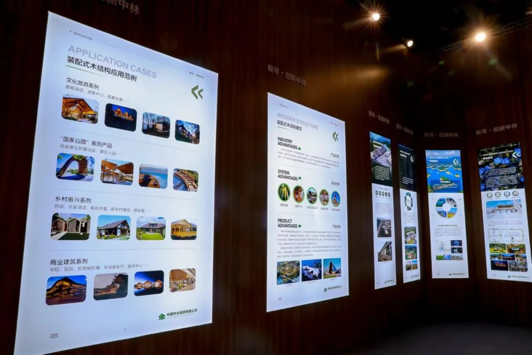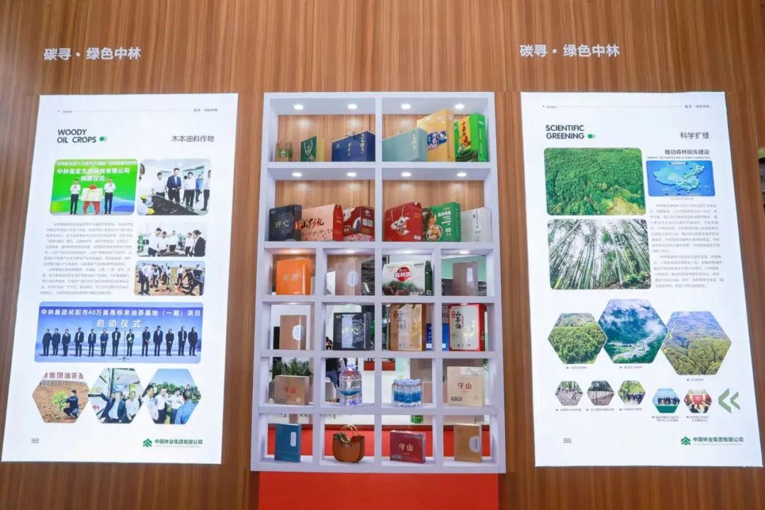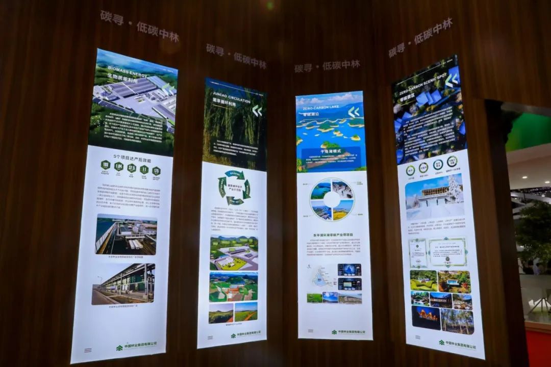 本次碳博会,中林集团展示内容以“碳寻·中林”为主线贯穿,围绕“绿色、低碳、创新、合作”四个维度,集中展示了中林集团近年来在科学扩绿、木本油料作物、零碳景区、零碳湖泊、生物质能源、菌草循环利用、竹缠绕技术、菌草人造板、装配式木结构等项目的特色亮点与技术成果。