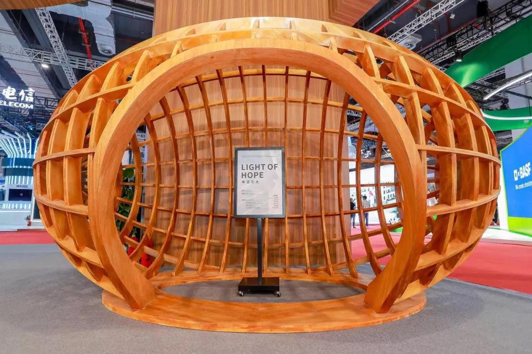 在固碳创新方面,中林集团还展示了一件名为“希望之光”的全木制结构件,为全透光设计,寓意着“中林人”眼中有光,心中有梦,对未来充满着希望。今年以来,中林集团通过产业体系谋划、资源整合、项目合作、产业培育及产业链延伸,不断推动装配式木结构产业发展,更好地实现生态产品永久固碳,为建筑行业绿色低碳发展提供了解决方案。