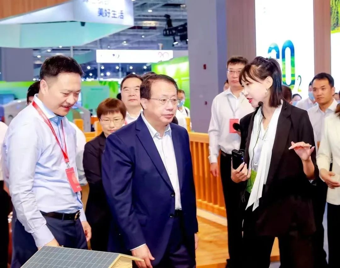 开幕式当天上午,中林集团党委书记、董事长余红辉陪同上海市委副书记、市长龚正,国家发改委副主任杨荫凯参观中林集团展厅,并为大家详细介绍中林集团近年来在森林固碳、林业战略性新兴产业、生态产品价值实现等领域的特色亮点与技术成果。参观嘉宾们对中林集团近年来在贯彻落实国家"双碳"战略,推进林业产业绿色低碳转型发展取得的成绩表示肯定。
