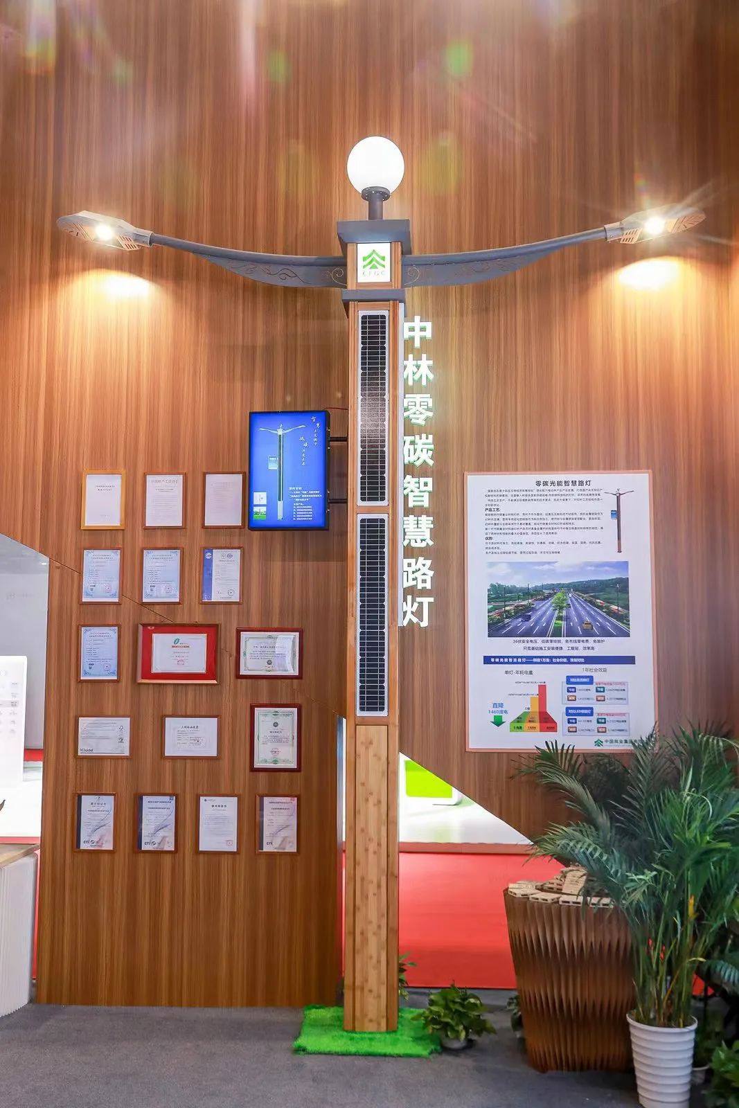 在节能减排方面,中林集团带来了全新产品——大功率零碳光能智慧路灯,其采用大功率COB路灯散热技术,被国家科技部鉴定为国际先进水平;搭载了独立的光能发电、转换、储能等装置,配备无线远程控制、环境监测、数据采集、发布等智能系统,实现数字化、网络化管理。灯杆部分采用竹缠绕技术制作,安装便捷,无需布线,支持连续15个阴雨天照明用电,相比传统市电照明方式,节能百分百,减少更多碳排放。
