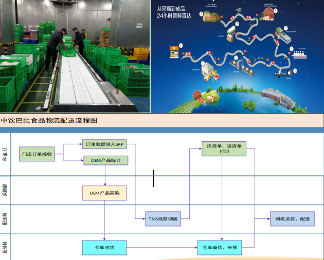 信息化建设引入SAP企业管理软件,与门店POS系统实现有效连接,使操作形成规范化、规范标准化模式;根据消费者的习惯和口味,提供个性化定制服务,实现柔性生产。使用自动分拣设备、标准托盘、标准周转筐、引入智能分拣系统、物流配送管理系统,打造智慧供应链平台,提高供应链协同效率;采取订单式生产,合理采购物资、食材,合理利用边角料,减少不必要材料消耗。利用冷藏加工、存储、运输,防止食品变质,降低储存、运输中的损耗。