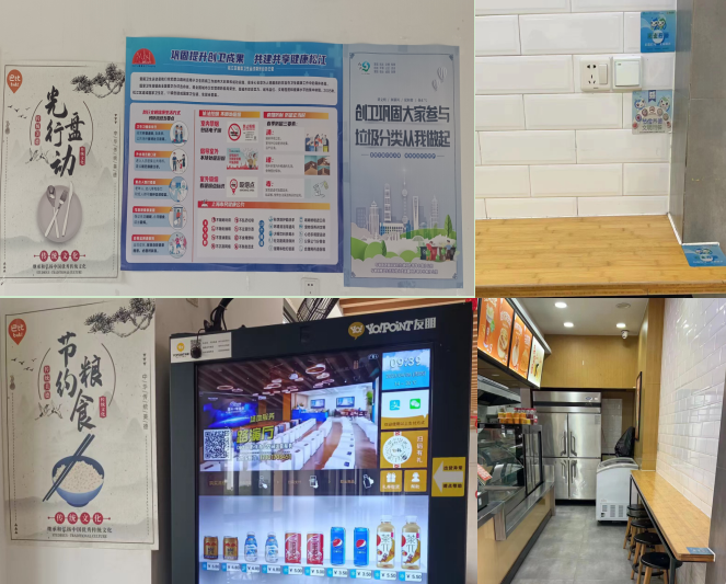 餐厅和门店摆放“光盘行动,节约粮食、垃圾分类”等提示牌进行宣传