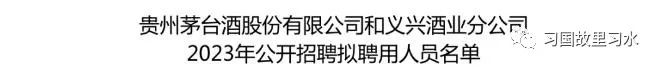 贵州茅台酒股份有限公司和义兴酒业分公司2023年公开招聘拟聘用人员公示