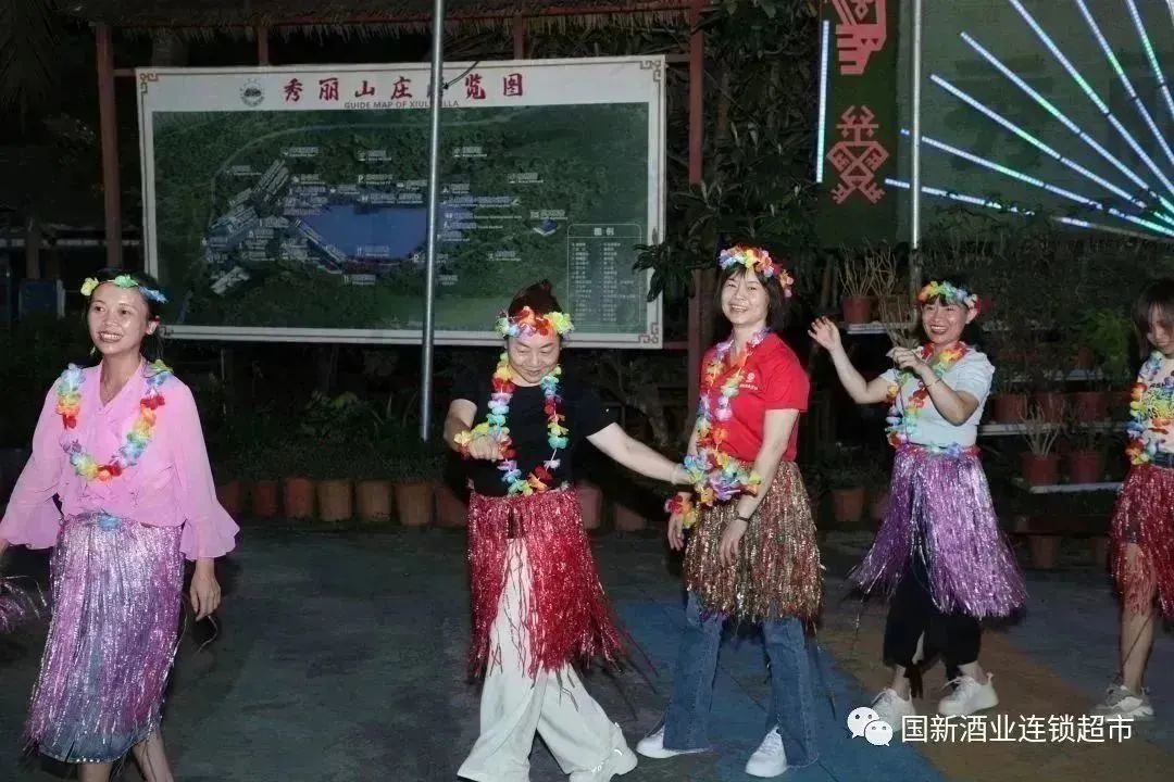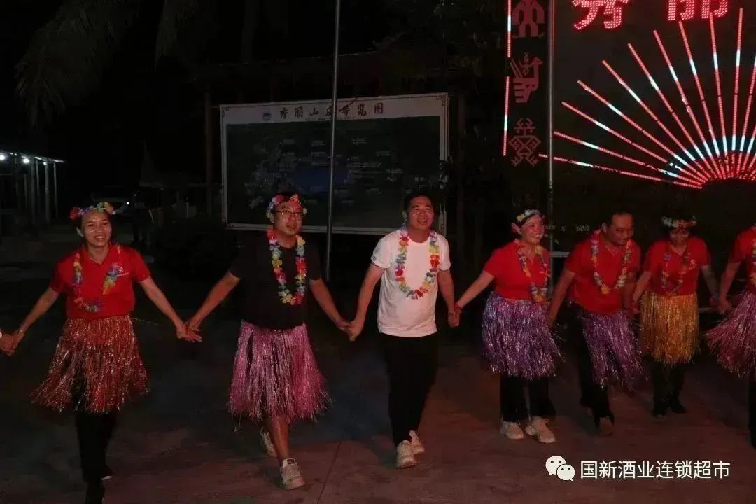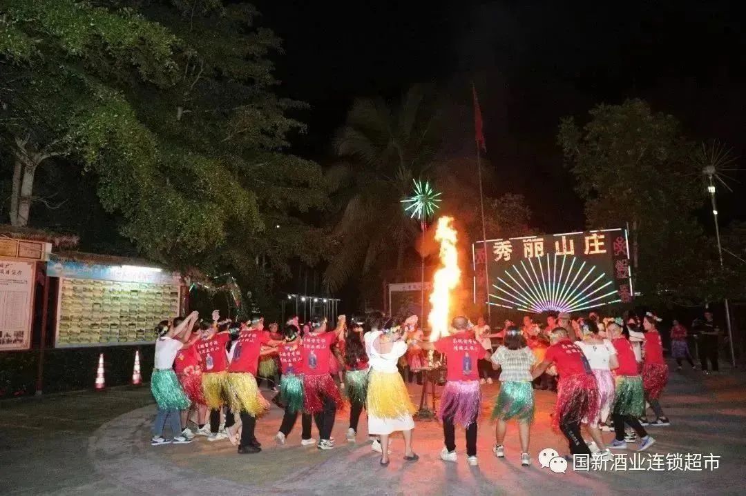 篝火代表着温暖和希望,象征着人们的团结和力量,也是人们庆祝节日、庆祝丰收的重要方式。晚会上的歌舞,展示了黎族独特的文化魅力,也传递了人们对生活的热爱和对美好未来的期盼。黎族篝火晚会还是人们交流感情、增进友谊的重要场所,大家卸下白天拓展的疲惫放松身心,在篝火旁载歌载舞,享受炭火烧烤的独特美味,沉浸在国新酒业这个大家庭带来的温馨里。
