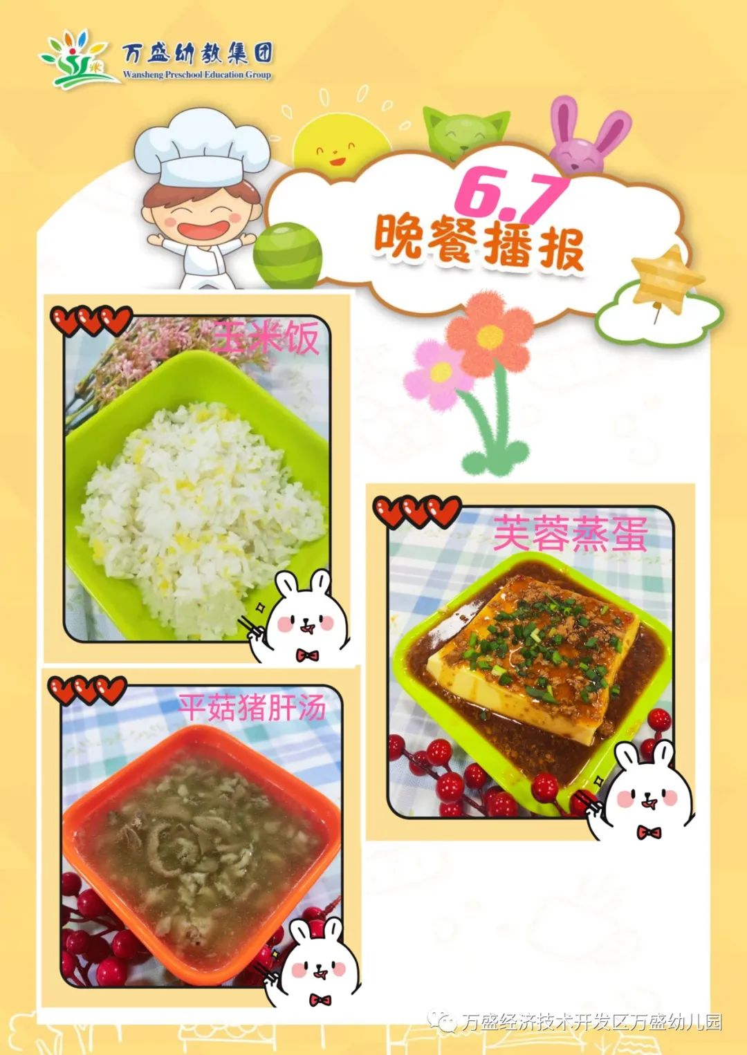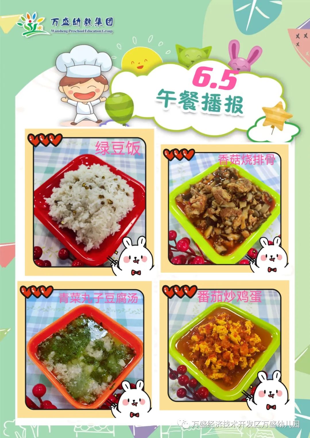 晚餐:绿豆饭、四喜丸子、莴笋叶鸡蛋汤