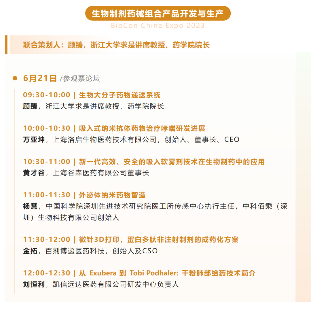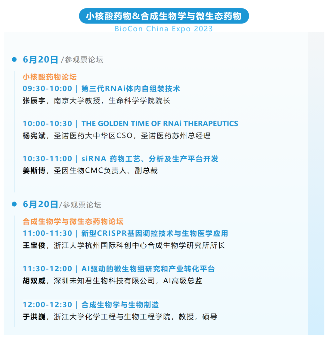 BioCon China Expo 2023第十届国际生物药大会暨展览会将于6月19-21日,在杭州国际博览中心再创新篇章。本届BioCon Expo由数位院士及权威PI领衔,200余位来自政府监管机构、临床、科研、产业界的重量级嘉宾代表,打造15余场深度研讨论坛,200+干货话题,预计集聚200余家优质参展企业与特色展品,总展览面积扩增至20000㎡的规模。