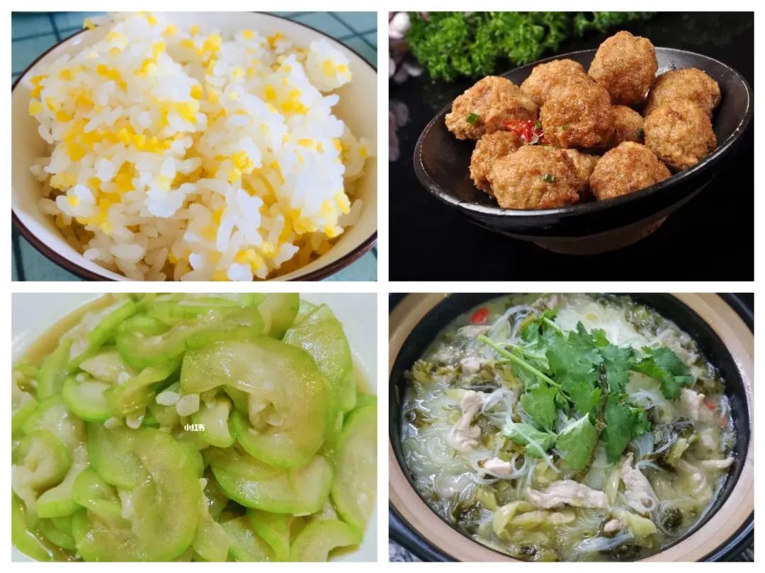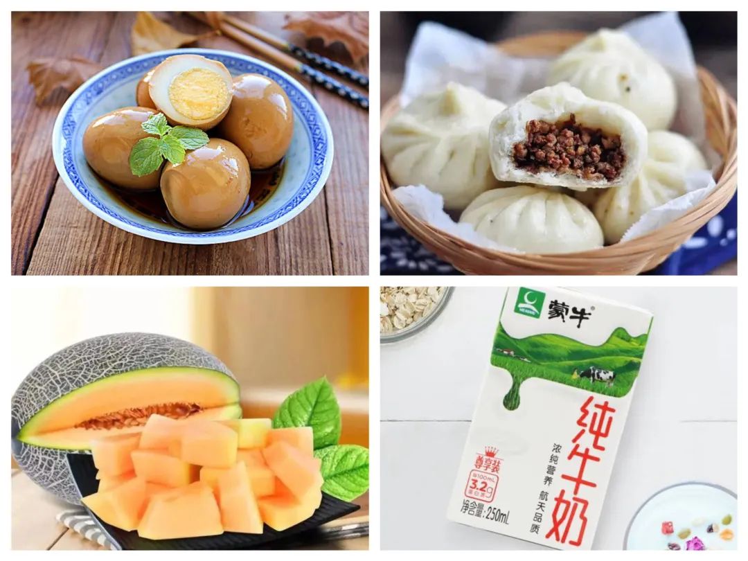 三幼 | 卤鸡蛋 芽菜鲜肉包 哈密瓜 牛奶 | 玉米米饭 牛肉丸子 白油付瓜 酸菜粉丝肉片汤 | 香蕉 饼干 |