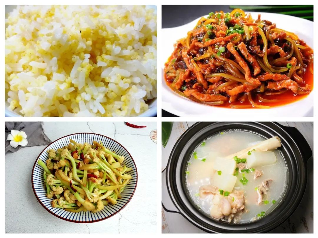 三幼 | 胡萝卜牛肉粥 蒸玉米 泡粑 苹果 | 荞麦饭 五彩肉丁 炝炒白菜 黄瓜肉片汤 | 红丝绒蛋糕 (麦加乐) 牛奶 |