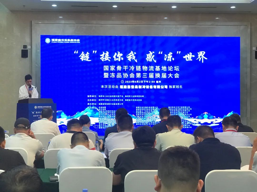 6月2日14时,福建省冷冻协会会长王坤建参加国家骨干冷链物流基地论坛暨冻品协会第三届换届大会。