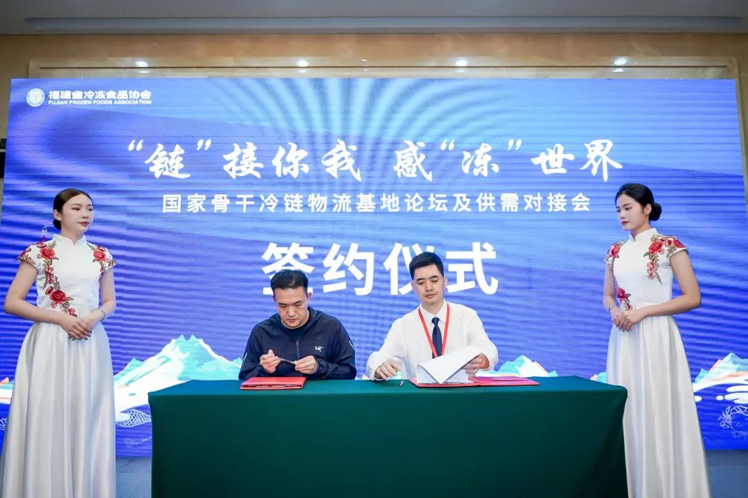 闽洋海蜇第三代传承人王坤建受邀参加国家骨干冷链物流基地论坛及供需对接会并进行签约仪式。