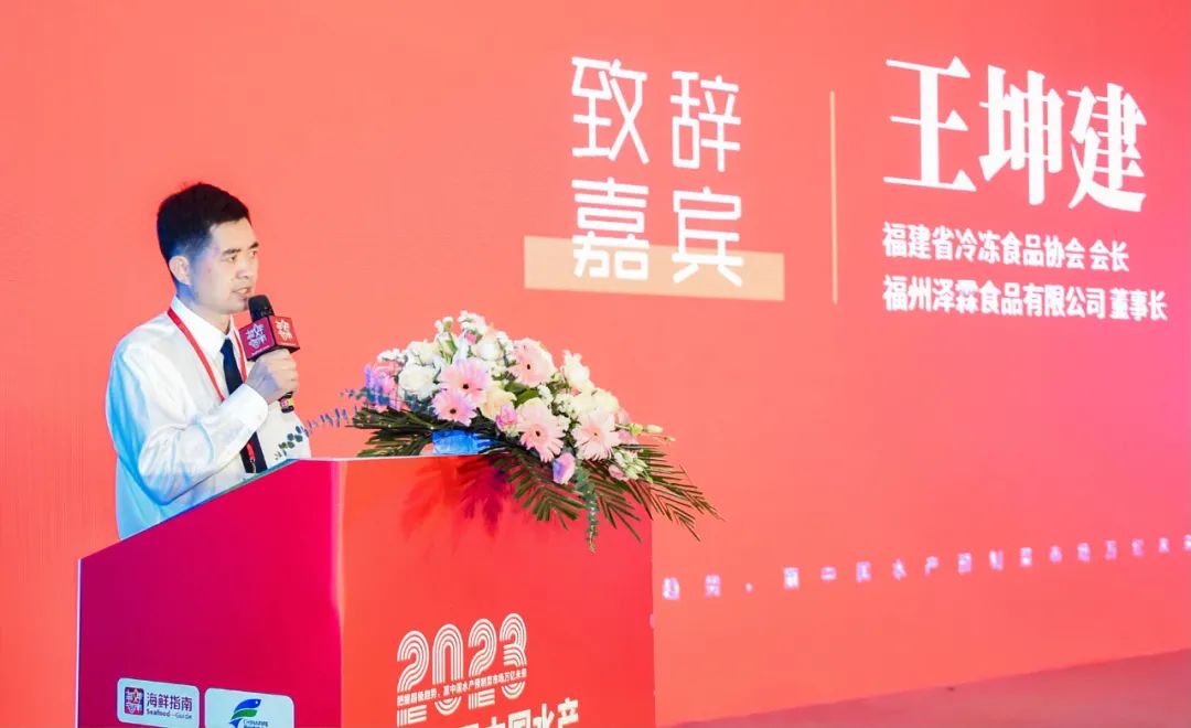 下午,闽洋海蜇第三代传承人王坤建受邀参加第二届中国水产预制菜产业高峰论坛并发表致辞。