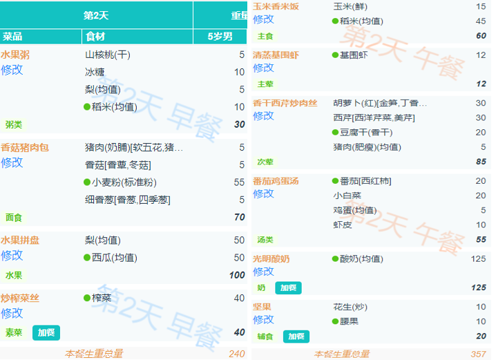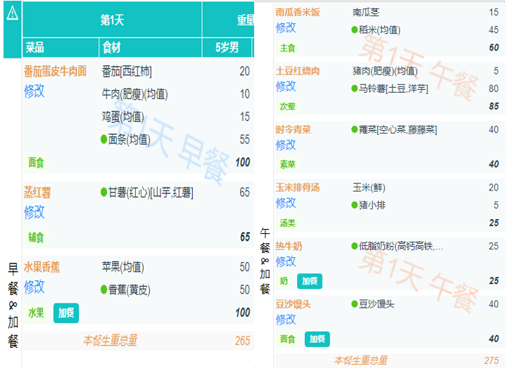 周一食谱带量分析