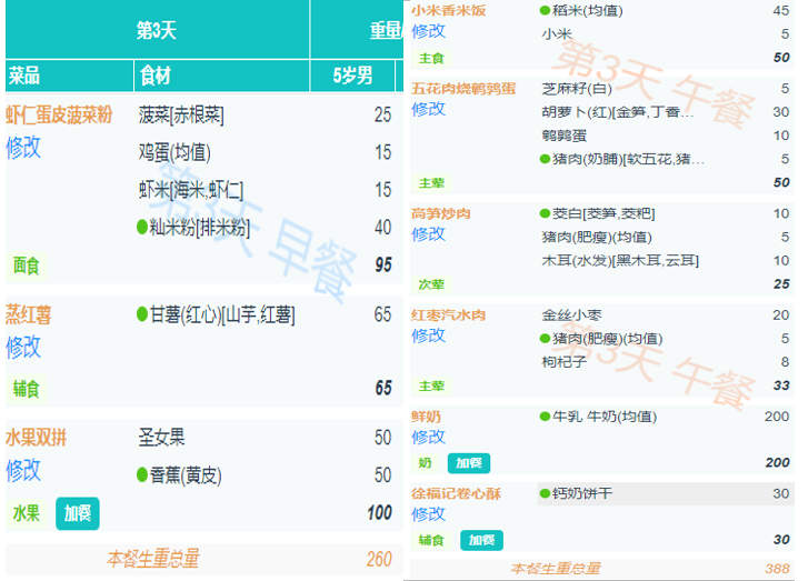 周三食谱带量分析