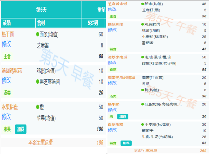 周五食谱带量分析