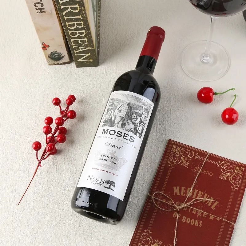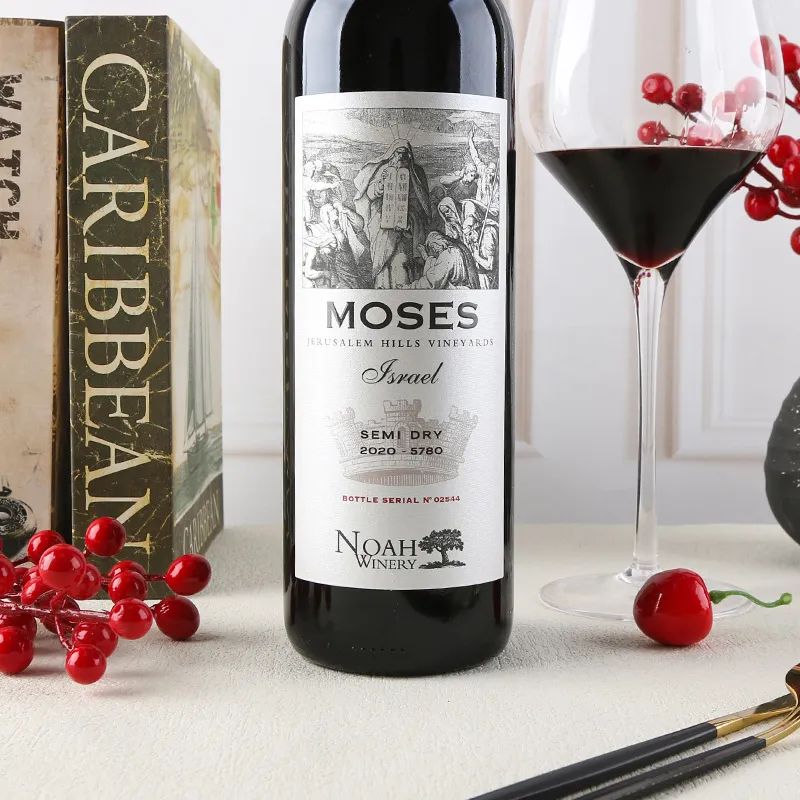 摩西赤霞珠半干红葡萄酒(圣餐)的色泽深宝石红,香气中带有黑樱桃和蓝莓味,口感浓郁紧致,单宁柔顺细致,带着香甜的香草和巧克力味,是一款口感非常优秀的半干型红葡萄酒。