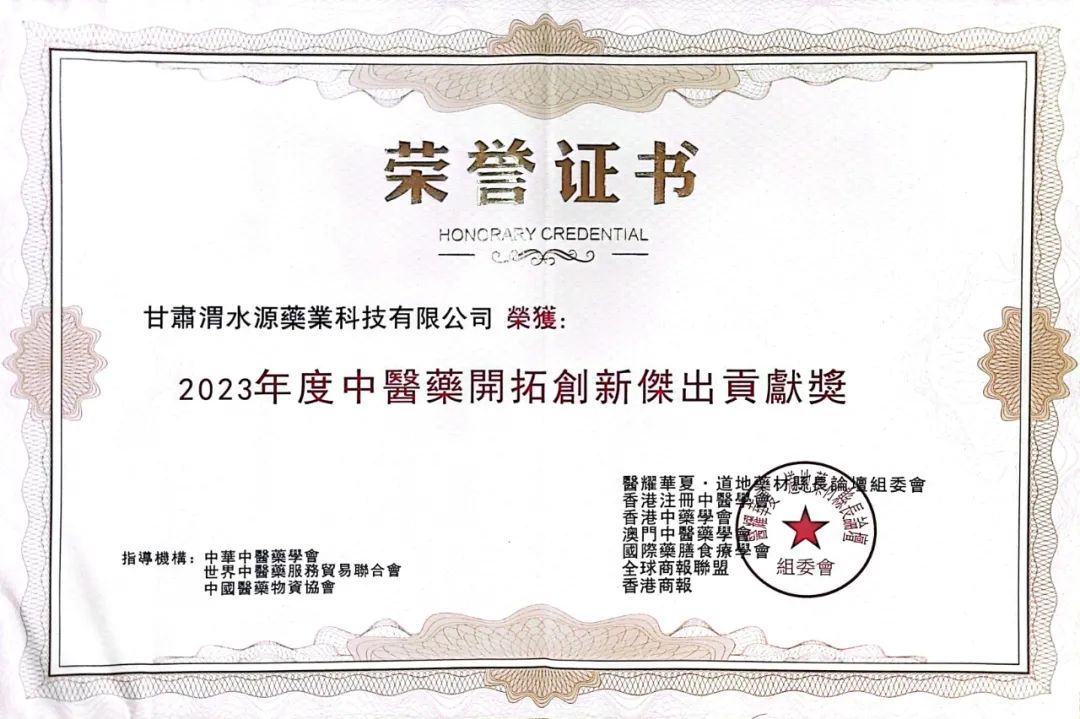 甘肃渭水源药业科技有限公司受邀参会并公司荣获“中医药开拓创新杰出贡献奖”。