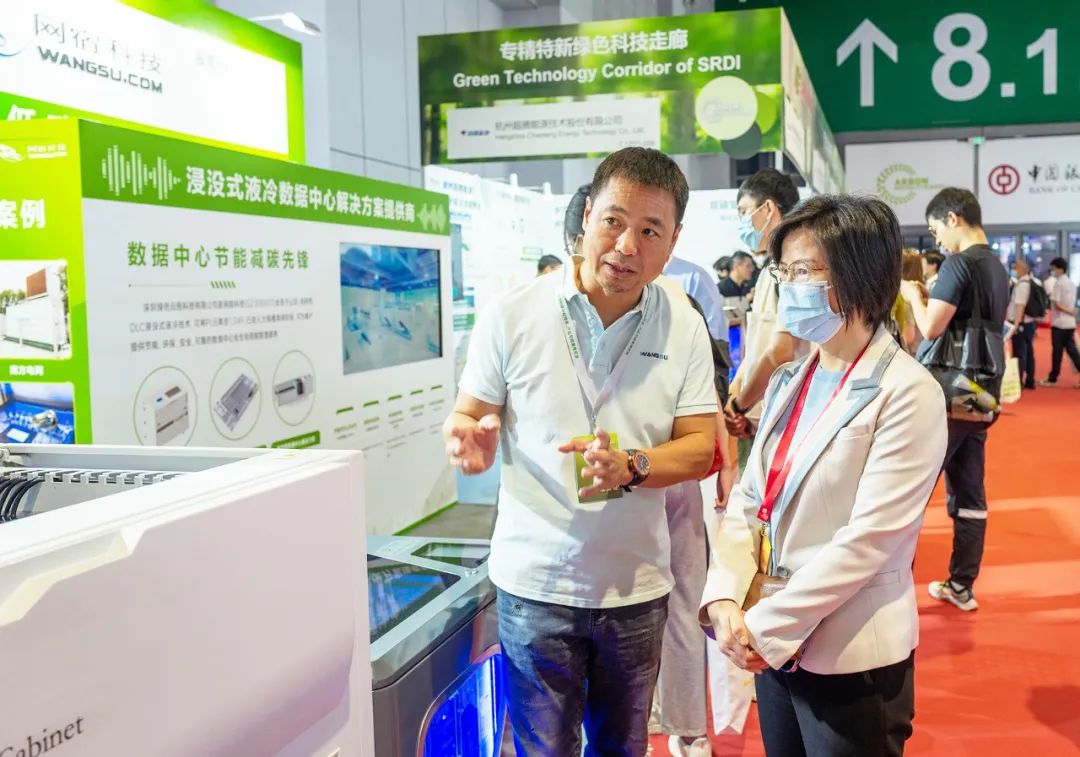 上海国际碳博会是国内首个以“碳中和”为主题的博览会,也是首个国家部委及上海市政府全面参与的双碳领域盛会,旨在搭建“碳中和”全产业链对接交流平台,促进经济社会发展的绿色低碳转型。作为数据中心行业的绿色先锋,网宿科技旗下绿色云图携液冷技术重磅亮相,全面展现在节能降耗、低碳发展等方面的成果与成效。展会首日,上海市市长龚正等政府领导一行莅临参观网宿科技展台,现场调研公司液冷产品和技术,对液冷技术表示了非常关注。
