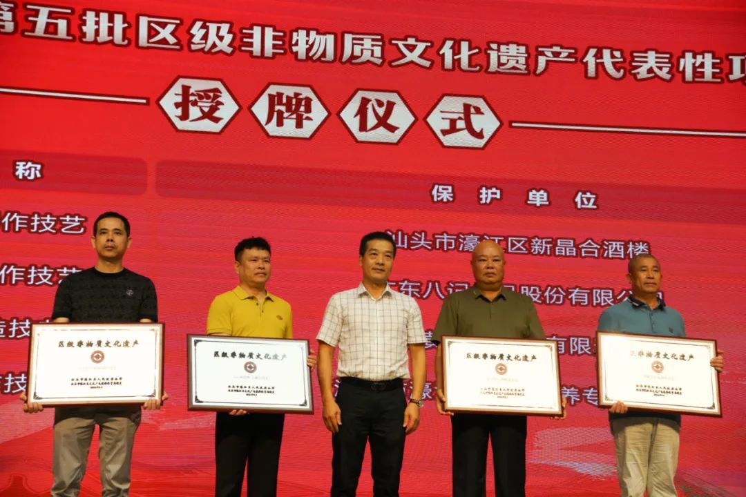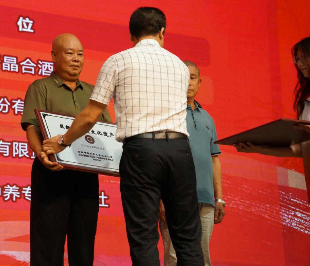 6月10日上午,濠江区2023年“文化和自然遗产日”非遗宣传展示活动暨非遗项目授牌仪式在区文化中心拉开序幕。黄姥爷酒业“五子衍宗酒酿造工艺”项目获批授予牌匾!