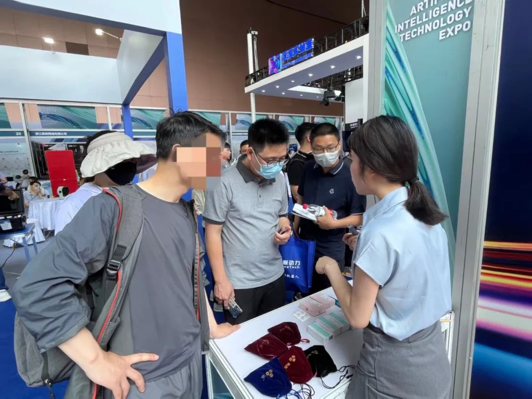 博览会现场,展台人流涌动,展品引发现场嘉宾围观体验。