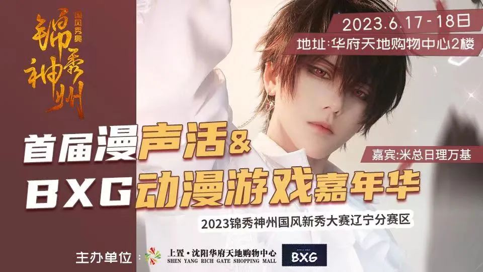 2023年6月17日-6月18日“锦秀神州国风新秀大赛辽宁赛区预选赛暨第一届漫声活&BXG动漫游戏嘉年华”将在华府天地购物中心2F举办!“锦秀神州国风新秀大赛辽宁赛区预选赛(宅舞/宅歌/汉服)” 、“BXG次元随机宅舞”、“超燃live乐队演出”等主题特色活动也将如期举行,众多活动等你来玩,小伙伴千万不要错过!