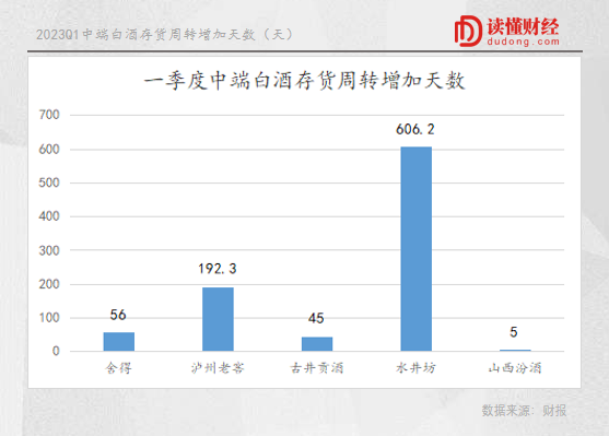 比营收增速下降更严重的是存货周转天数的增加,大多数中端白酒库存周转天数都增加到1个月以上。而同期茅台库存周转天数仅增加了10天。