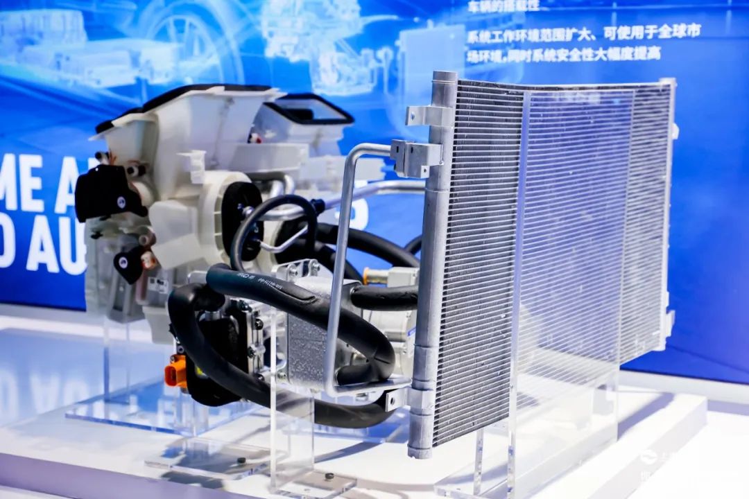 海立展出可应用于新能源乘用车、新能源客车、新能源专用车等多款电动汽车的多用途车用空调压缩机及满足800伏快充平台化需求的高压热泵车用空调压缩机。作为行业的领先产品,该款产品凝聚了涡旋流体压缩机、永磁同步电机、360度变频控制三大核心技术,具有低噪声振动、高效率、高可靠性等优点。