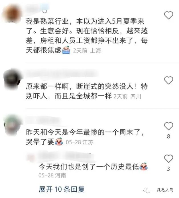 昨天我在一个群里看到这样一些截图,大概意思是,2-3月份生意还能凑活,4月份开始下滑,5月份本来以为要上升,结果是断崖式下滑…如今6月份了,开始内心发慌了…