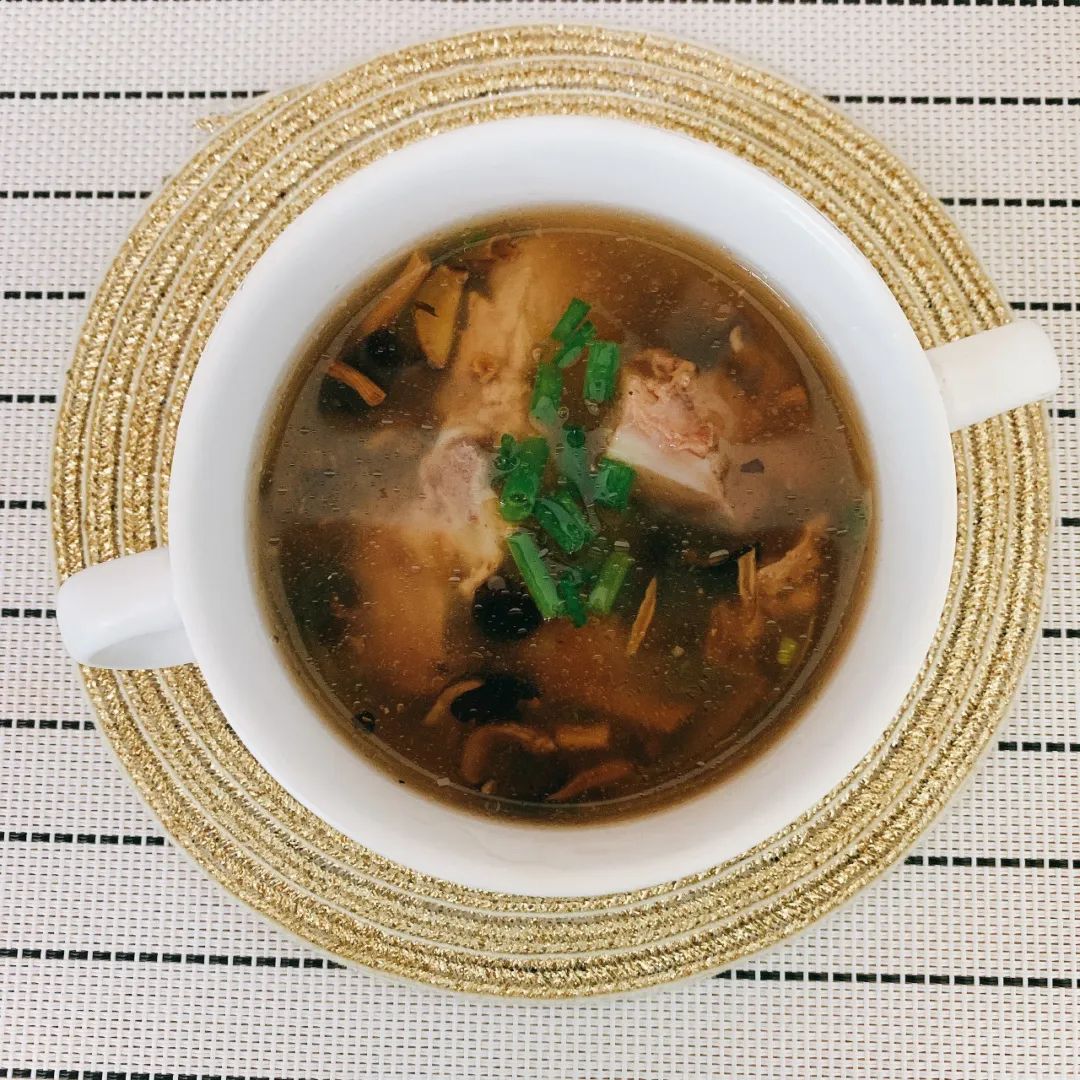 茶树菇猪骨汤:茶树菇3g、猪小排10g