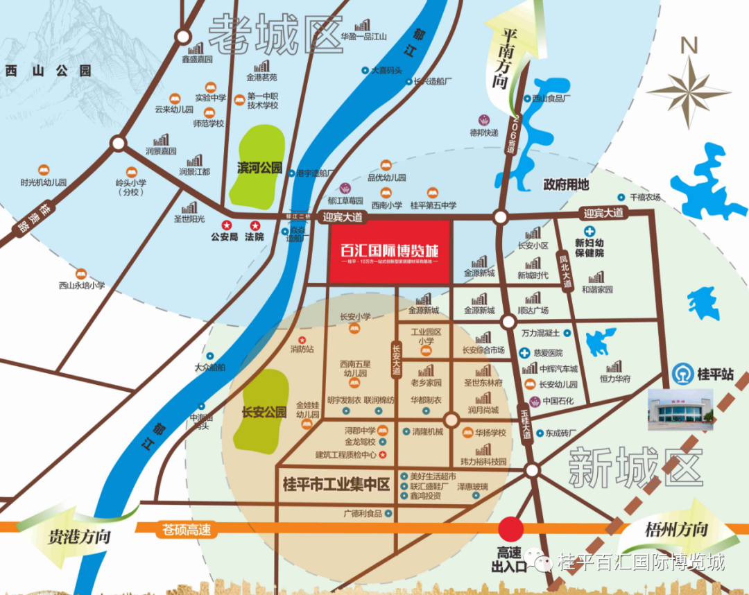 雄踞桂平“高铁新区”、“长安新区”的中芯地段,坐拥桂平高铁、高速进城门户——迎宾大道,周边汇聚桂平第五中学等五所优质学校;公安局、法院、妇幼保健院环伺周边,全桂平80%新建楼盘都在城市南面,每一个城市的高铁站、高速路通常都是城市的发展方向,也印证了桂平未来发展方向毋庸置疑。