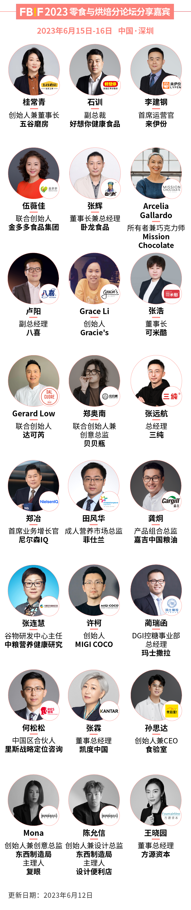 面对人口结构变化带来的需求调整,怎样的饮料有机会伴随消费者一生?在这方面,茶、咖啡品类本身更能适应不同年龄层,但基于健康、好喝的产品创新也能带来新的机会。同时,现制饮品也为大家提供了更多的选择。面对中国酒饮市场这样一个如此具有本土特色的市场,我们将以更加全球的眼光来寻找可能的机会。经济将如何影响酒水消费?购买渠道发生了怎样的变化?“新酒饮”风潮回落之后,如何从产品、文化、场景的角度来重新认识由新青年们定义的新酒饮?此外,FBIF还携手国际女性葡萄酒及烈酒业界大奖(Women in Wine & Spirits Award)首次举办特别论坛,邀请来自蒲昌酒庄、怡园酒业、崃州蒸馏厂、银色高地、天塞酒庄的嘉宾,共同探讨葡萄酒与烈酒行业从产品到品牌、渠道的创新之路。2023年,对于餐饮、调味品以及预制菜来说,最重要的核心议题就是“回归本质”。在本届调味品与预制菜论坛中,我们将结合市场变化,深度分析各个赛道比拼的底层逻辑。让产品不仅做到好吃、吃好,还要进一步走向世界。你准备好了吗?在过去的一整年里,原配料都“赚足”了眼球。今年,我们不仅要深度挖掘极具潜力的功能性成分,也要开始探讨科技在原配料端的前瞻应用。我们曾遇到过的“危机”或将成为我们未来最大的机遇!渠道与供应链论坛将沿着“终端零售渠道-商品管理与创新-生意经营-上游供应链响应”的思路,与大家共同探讨小业态、硬折扣、零食集合店、区域性商超、会员店、同城/即时零售等业态创新,以及打通产业链上中下游的产品创新、零售商自有品牌、生意经营理念、精细化管理等热门话题。在可持续包装前沿,如何规划通向未来蓝图的实用路线?颠覆性AI出现,你是否也渴望撬动创意杠杆,释放科技变革的力量?重新构筑消费体验,包装触点成为关键,如何用细节凸显品牌核心价值,再塑与消费者的互动?最终回归品牌设计的本质,如何运用设计思维,像种树一样“栽培”一个品牌?新的市场机会正在酝酿——县域市场、品牌出海,老生常谈的市场需要更细致的理解——95后新生代的潮流消费;高度不确定的市场环境需要企业制定更精细化的营销策略,建立可持续、抗风险的营销模式;存量竞争的号角已经吹响,品牌护城河的建立迫在眉睫;AIGC、AR/VR/MR等底层技术日渐成熟,元宇宙轮廓乍现;想要把“钞能力”转化为“超能力”,投资人与企业之间要如何高效合作?用户价值理解、团队打磨、技术商业化、并购整合……在这些环节中,大/小企业如何整合资源以实现健康的成长?除此之外,我们还将把眼光放到更远的未来,探索科技如何重塑食品饮料行业。Marking Awards(MA)——全球食品包装设计大赛,由FBIF于2016年在上海发起,面向全球。来自全球12个国家的44位评委加入MA2022国际评审团,由百事、雀巢、玛氏、伊利等全球百强食品公司包装设计部门高管,JKR、Pearlfisher、Prompt Design、BETC等国际一线设计机构创始人和设计总监,以及利乐、阿普塔、奥瑞金、维实洛克等各大包装包材公司高管组成,致力于为食品饮料行业的包装设计提供多元的解读和公正的评判。