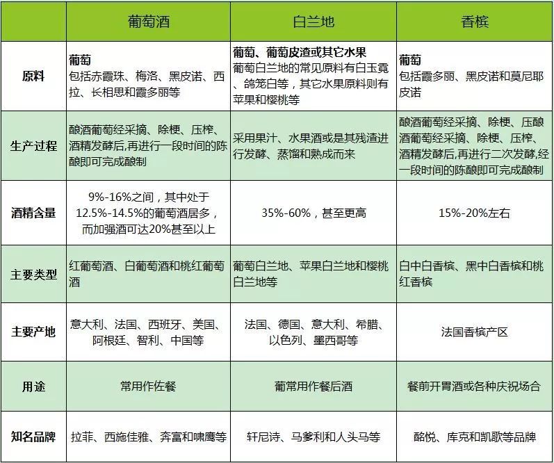 白兰地、香槟和葡萄酒是饮酒者经常接触到的三种酒精饮料,而这三者有很多相似之处。除了由葡萄酿制而成,它们都对产区和酿造工艺有着严格的概念,并且可以在橡木桶中陈酿以增加风味,并有一定的等级体系。白兰地和香槟酒也是如此吗?这三者有什么区别和联系?