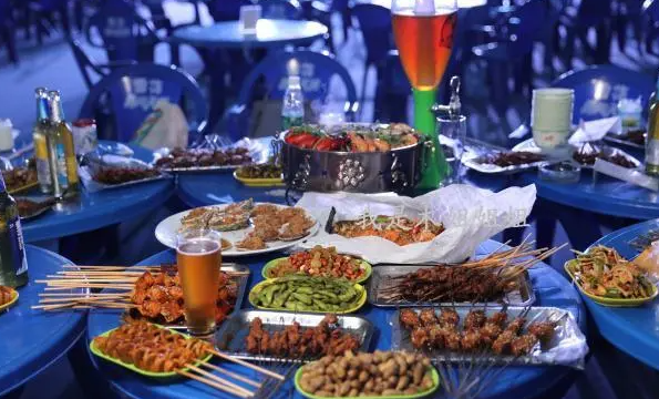 活动期间只需在酒吧街、烧烤街消费满18元即可一元购畅饮冰镇啤酒。