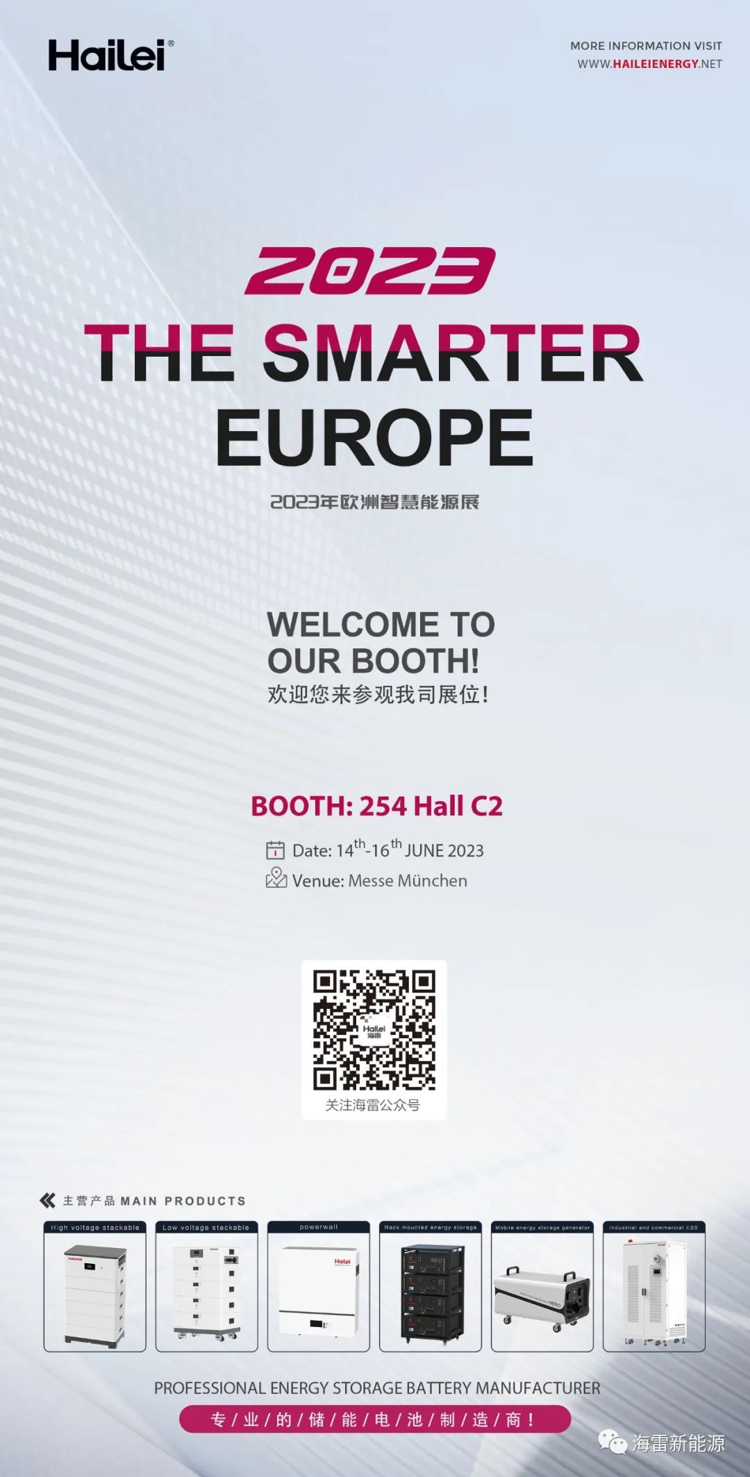 海雷新能源作为专业的储能电池制造商,与您相约254 Hall C2展台,期待与全球储能合作伙伴共赴零碳盛会。