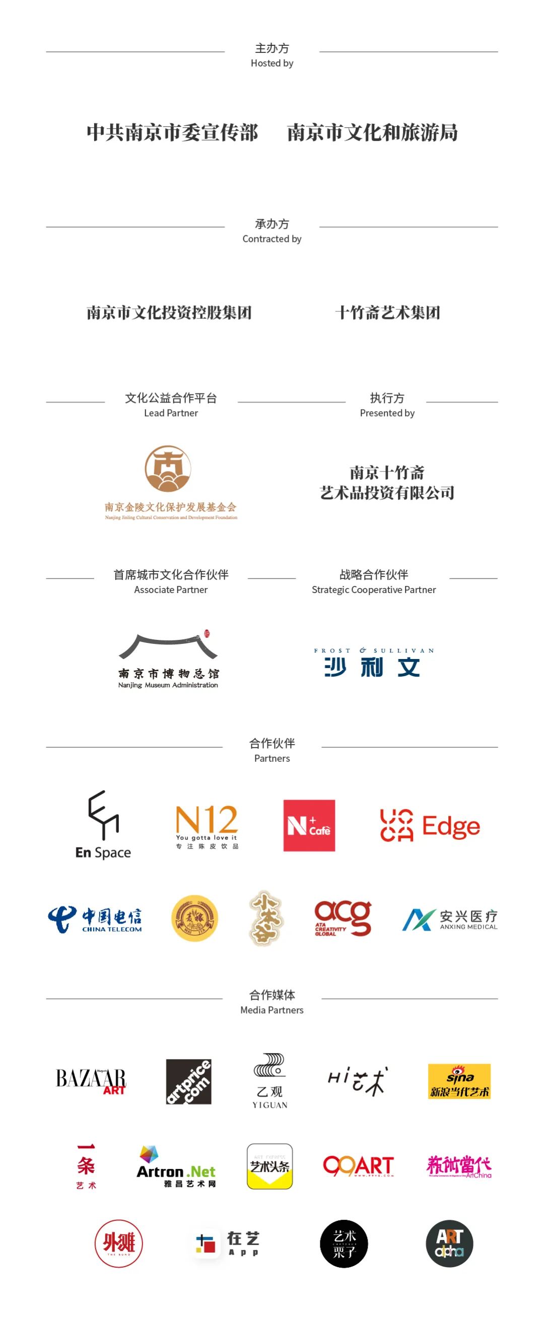 本届南京国际艺术博览会由中共南京市委宣传部、南京市文化和旅游局主办,南京市文化投资控股集团、十竹斋艺术集团承办。南京金陵文化保护发展基金会系文化公益合作平台,执行方为南京十竹斋艺术品投资有限公司。