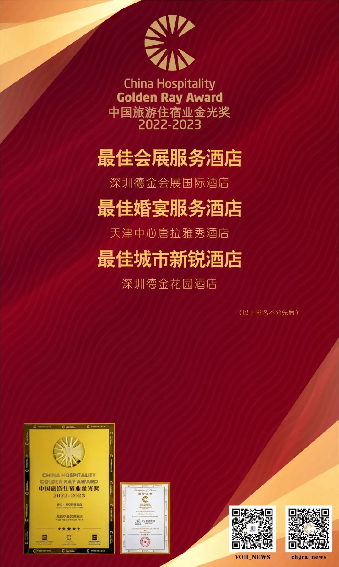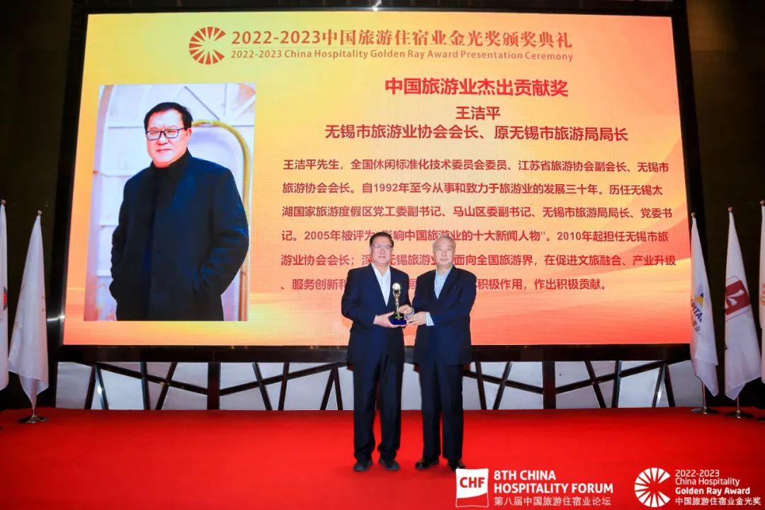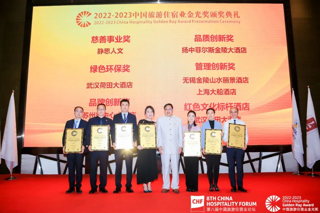 2022-2023中国旅游住宿业金光奖颁奖典礼于2023年4月26日晚在无锡瑞廷西郊酒店隆重举行,100多个单位及个人荣膺奖项,充分展示了中国旅游住宿业在发展变革中的品牌形象。锦江、建国、金陵、君澜、中旅酒店、洲际、温德姆、华美达、豪生、丽思卡尔顿、格林东方、格林豪泰、凤悦、胜高、雅致、美豪、费尔顿等60多个品牌及300多家品牌酒店、酒管公司(集团)参与并入围了本次金光奖。祝贺本届金光奖获奖单位和个人,致敬疫情期间不忘初心、克服困难、坚守岗位的酒店人,感谢为中国旅游住宿业做出的成就与贡献!