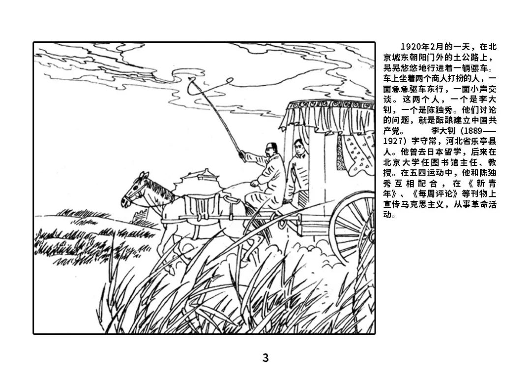 连环画《中国共产党的诞生》通过回顾从五四运动到中共一大的历史进程,以典型人物和重要事件为中心,再现了中国共产党诞生的具体过程,揭示了其背后隐藏的历史必然性,彰显了“坚持真理、坚守理想,践行初心、担当使命,不怕牺牲、英勇斗争,对党忠诚、不负人民”的伟大建党精神。