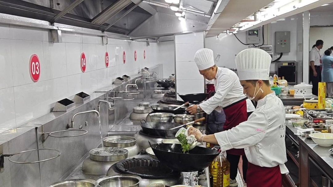 比赛中,来自武当山宾馆、建国饭店、玄武大酒店、融合食府等餐饮单位的36名选手个个干劲十足、有条不紊。他们动作娴熟地运用煎、炒、炸、蒸、煮等多种烹调技法,从砧板上的刀工比拼到菜品上的摆盘创作,严格按照流程规范要求操作,食材在选手们的巧妙加工下变得香气四溢、风味十足,一道道精美的菜品为现场评委带来视觉和味觉的双重享受。