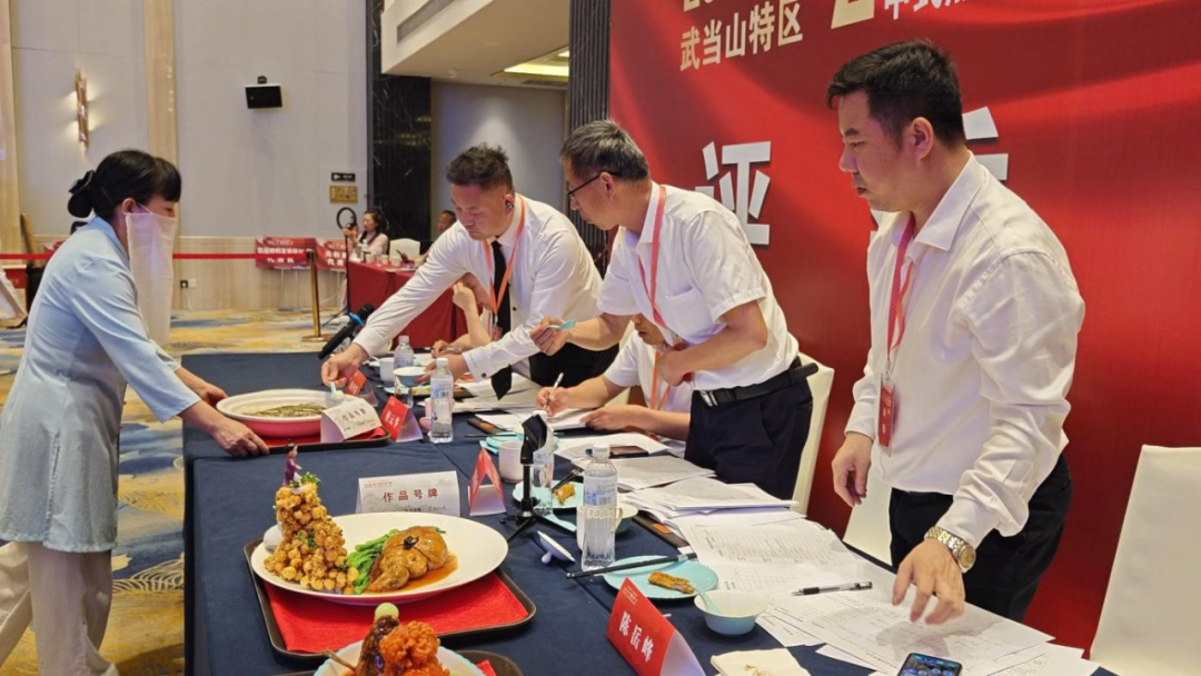 本次大赛分为中式烹调师食品安全、技能技艺展示、厨房管理、作品呈现、口味质感五个比拼环节。其中,理论知识主要包括饮食卫生知识、饮食营养知识、饮食成本核算知识、安全生产知识等内容;手工实操则为现场烹制,包含武当特色的菜肴。