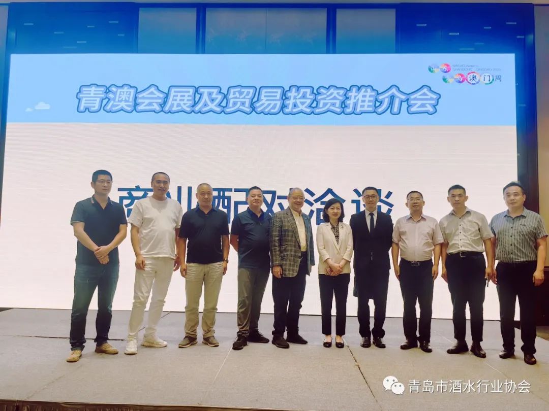 为加强青澳企业之商贸合作交流,以及宣传澳门营商环境。会展产业发展及葡语国家经贸等资讯,澳门贸易投资促进局、青岛市商务局、中国国际贸易促进委员会青岛市分会等单位于2023年6月9日下午在青岛香格里拉酒店一楼大宴会厅成功举办“青澳商贸会展暨投资交流会”。青岛市政协李苏满副主席、澳门贸促局余雨生主席、青岛市人民政府台港澳事务办公室闫晓峰副主任、青岛市商务局于浩副局长、中国国际贸易促进委员会青岛市分会唐旭艳副会长、横琴粤澳深度合作区经济发展局投资促进处张伟锋处长及文旅会展商贸处林衍杰处长出席交流。青岛市酒水协会孙资凯秘书长、李学刚副秘书长、王德良副秘书长、周爱兵副秘书长、郭前铎理事、会员耿立、左明亮、尹忠华、薛松参加了本次活动。