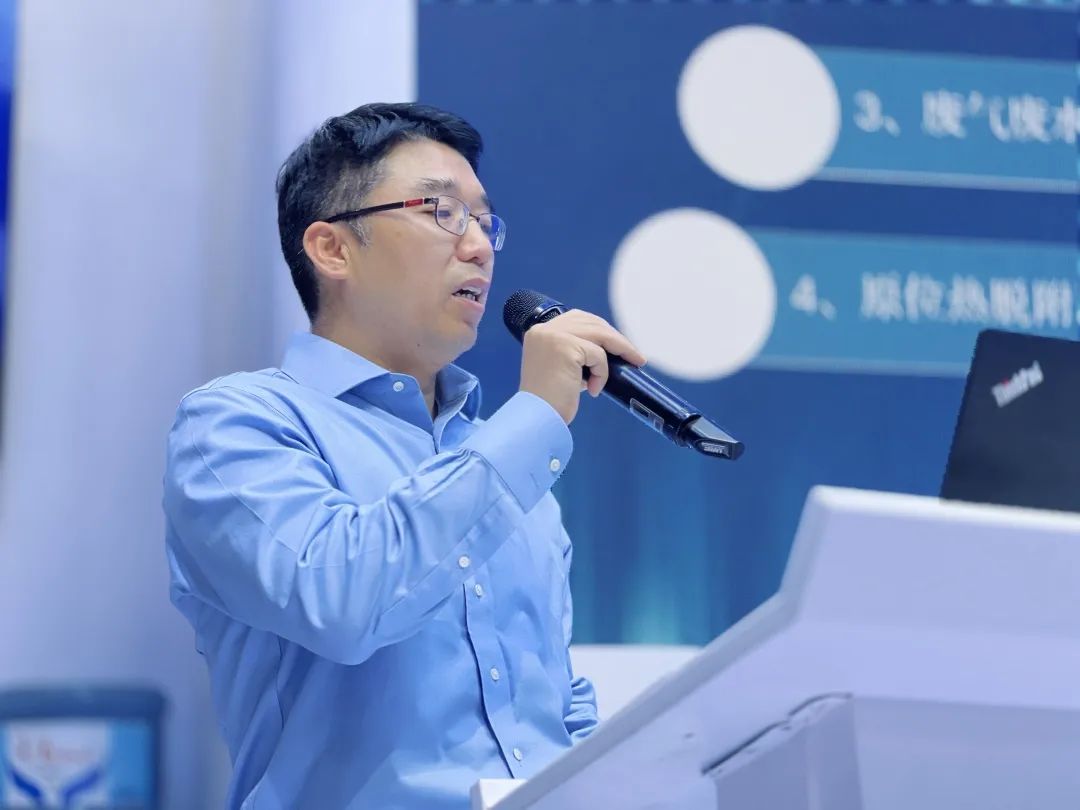 上午场,上海交通建设总承包有限公司副总经理、生态环保事业部总经理孙柯华,上海澳圣德环境科技 (集团) 有限公司首席科学家李铁、上海栩春航运有限公司总经理杨子江、上海澳圣德环境科技(集团) 有限公司工程技术中心总监董继武出席论坛并发表演讲(排名不分先后),从不同细分领域结合实际案例探讨碳中和时代的技术创新助力企业碳中和目标。孙柯华以《土质快速检测技术的应用与推广》为题,他指出在我国土十条和碳中和的双目标下,土壤污染问题已是现阶段面临的一大难题。土壤污染控制的关键在于发现受污染土壤,才能做到全流程管控。切合市场发展,中交上航局携上海澳圣德环境共同研发了土质自动检测系统,并已升级到2.0版本,目前应用在上海共青码头、辉界码头和关港码头等处,与人工采样实验室分析相比出数据更快,更低碳环保。将污染控制在最前段,是土壤污染治理节能降碳的重要手段,土质快速检测技术将为土、碳双目标实现贡献自己的力量。李铁以《土壤修复原位热脱附技术与市场创新》为题,他指出,随着土十条的颁布和土壤法的实施,国内场地修复市场前景广阔。原位热脱附技术可以在较短的时间内完成高难度高浓度有机污染区域的修复。中交上航局联合上海澳圣德完成了原位热脱附技术和设备的自主研发,填补了我国在此方面自有技术的空缺,本研发技术具有数项在绿色低碳方面的技术创新,适用于各类有机污染场地。太阳能或电力加热的低温原位热力修复是一项低能耗的绿色低碳型修复技术,具有市场应用创新性。杨子江以《节能减排型油电混合动力船舶的推广与应用》为题,他介绍2022年,为深入贯彻党中中央、国务院关于“碳达峰、碳中和”决策部署,围绕营运交通工具碳排放强度下降总目标,发展绿色低碳交通。生态环境部、交通部、财政部、工信部、发改委等多部委联合发文,有关“绿色低碳交通可持续发展”“加快发展电池动力船舶技术应用”“支持电动船舶推广应用”的指导意见。中交上航局生态环保事业部勇于探索、携手合作伙伴率先在城市渣土水运项目上应用推广“千吨级油电混合动力船舶”。这两条船是上海首次将油电混合动力应用在内河散货运输船舶的成功案例。中交上航局生态环保部将坚定不移的坚持走好生态优先的绿色发展道路,发展壮大绿色低碳新兴产业。董继武以《新能源无人控藻船碳中和》为题,他指出自1998年以来,河流湖泊富营养化及蓝藻水华问题日趋严重,对入湖河流水质、饮用水安全和居民健康构成严重威胁,也成为城市绿色高质量发展的瓶颈。为解决这一难题,从2021年起至今2年多时间里,中国交建同奥圣德环境共同研发了新能源无人控藻船,该船搭载有新型锂电池,柔性太阳能光伏,自巡航单元,自动撒药系统,水质在线监测单元和微纳米曝气单元,以最少的人力、能耗、成本有效控制水域蓝藻爆发,解决多项水质污染问题。