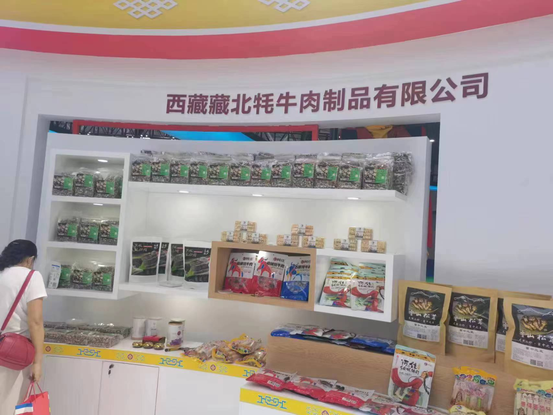 西藏藏北牦牛肉制品有限公司以文博会为平台,展示酥油、茶叶、糌粑、牛羊肉以及各式奶制品等那曲特色饮食。